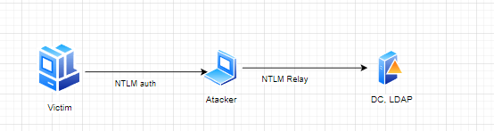 В рамках атаки с помощью NTLM Relay от имени Машинной Учётной Записи выполняется обращение к LDAP и модификация атрибута msDS-KeyCredentialLink машинного аккаунта. После этого злоумышленник использует свой приватный ключ для получения Kerberos-билетов через PKINIT, фактически аутентифицируясь от имени жертвы и получая TGS на имя доменного администратора для последующей аутентификации на Victim Host.