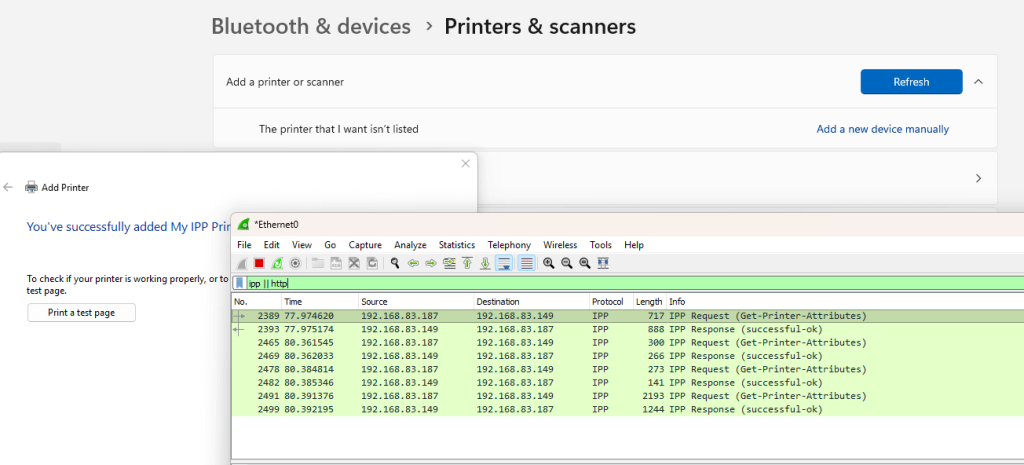 И если это устройство не установлено в системе, то ОС Windows запросит информацию об устройстве (IPP Get-Printer-Attributs).